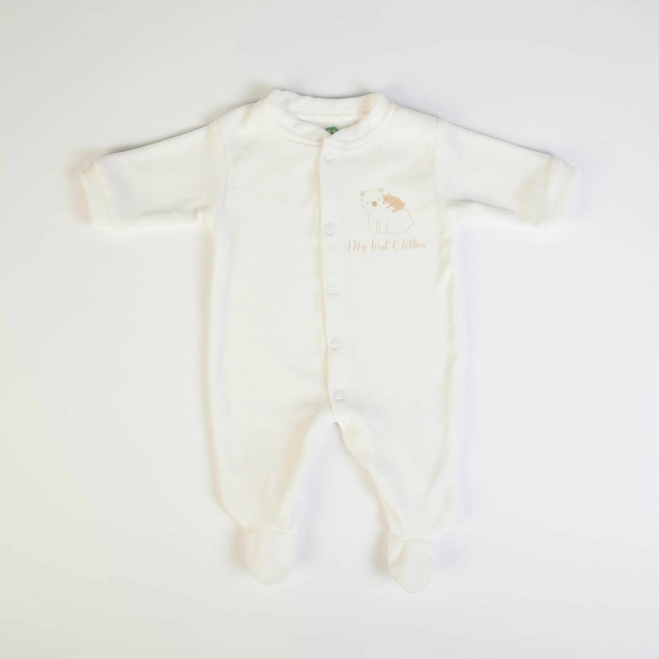 - Organic velour babygrow with front snap closure – ultra-soft and warm